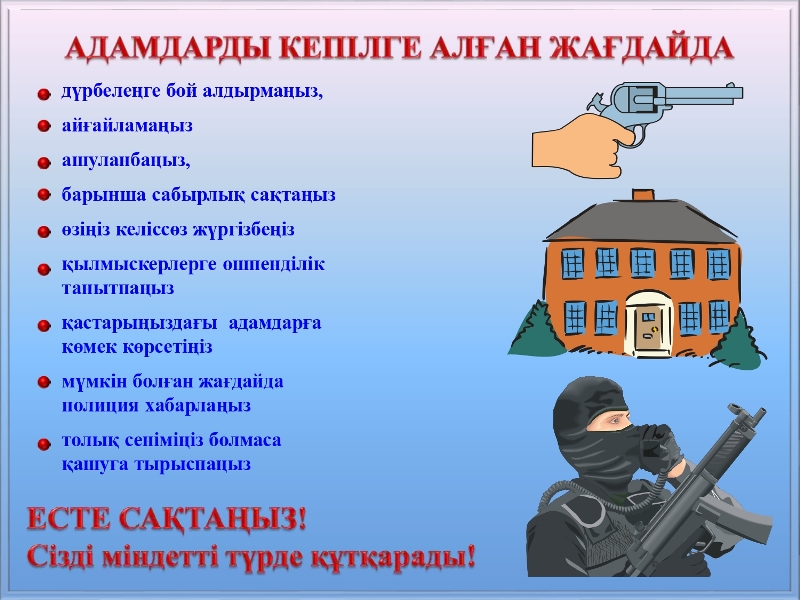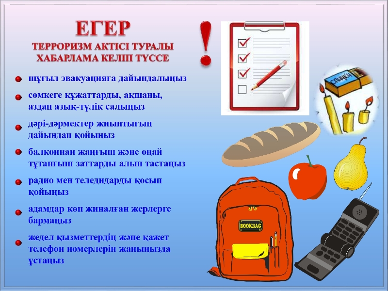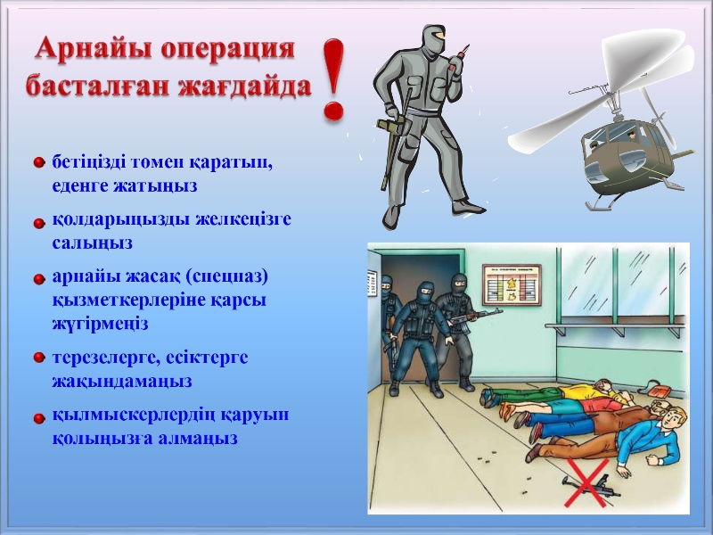 Терроризм актісінің қауіпі туындаған немесе терроризм актісі жасалған жағдайдағы әрекеттер туралы жаднама