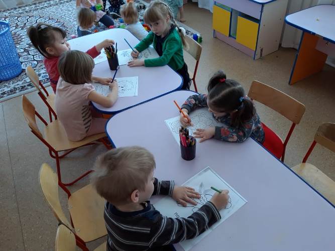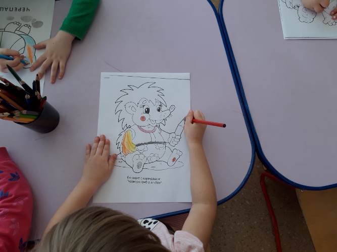 Раскрашивание готовых рисунков способствует развитию мелкой моторики, подготовке руки к письму, умению различать цвета, ориентироваться на листе бумаги. Ребята учатся аккуратности и развивают глазомер, стараясь не выходить за контур рисунка при раскрашивании.