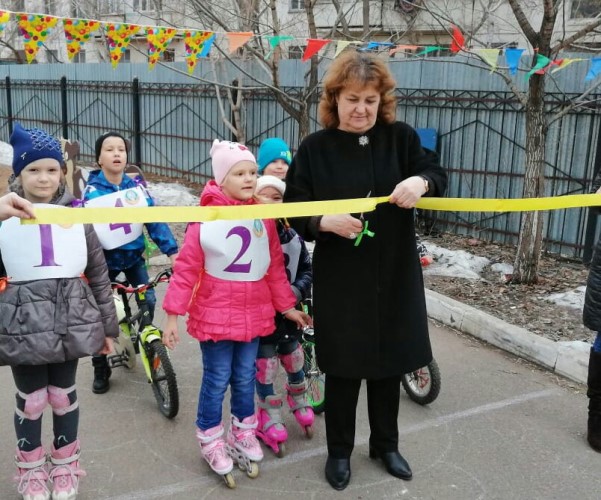 Сегодня, 4 апреля 2019 года в 10 часов 30 минут в нашем саду стартовали мероприятия, посвященные Всемирному дню здоровья. Соревнования по спортивному троеборью среди воспитанников старших и предшкольных групп с русским языком обучения. открыла заведующая Дюсембина Зайтуна Ризадиновна, торжественно разрезав ленточку.