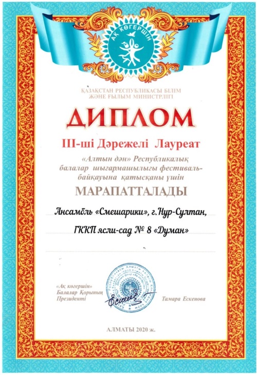 ГККП "Ясли - сад № 8 "Думан" акимата города Нур-Султан
